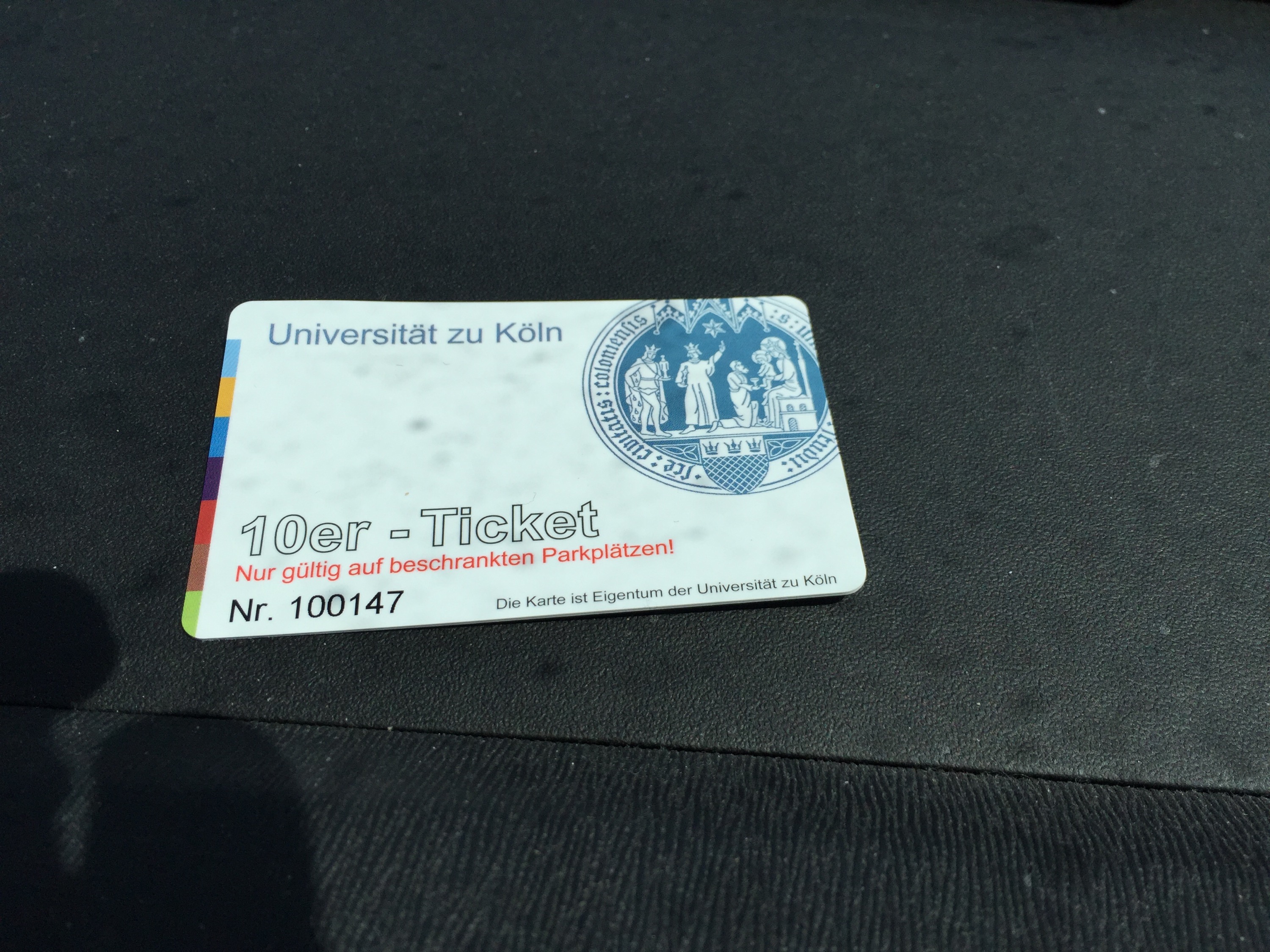 Jetzt kam die Uni auf die wirklich tolle Idee, für Leute wie mich eine Art Prepaidkarte einzurichten. Zur Begrüßung gab es ein Kontingent von 10 Parktagen umsonst.